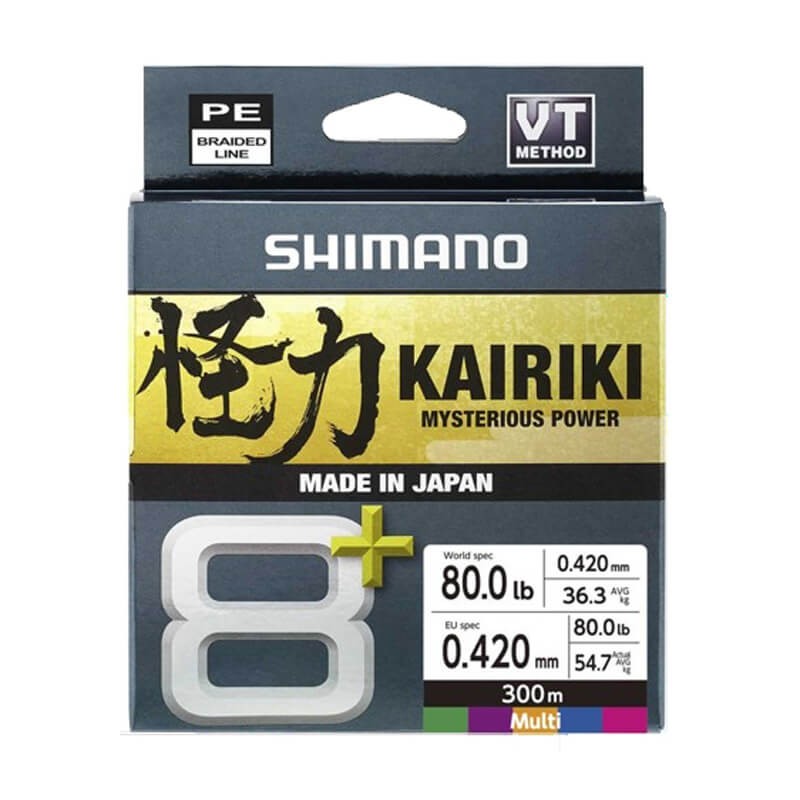 Το άκρως επιτυχημένο οκτάκλωνο νήμα Kairiki 8 έπειτα από πολυετή πορεία και χιλιάδες πωλήσεις στην αγορά, δέχθηκε αναβάθμιση και παρουσιάζεται εκ νέου! Το όνομα αυτού, Kairiki 8+ και εξ’ αρχής η ονομασία του φανερώνει ότι είναι βελτιωμένο σε όλα σε σχέση με το προηγούμενο μοντέλο. Το τεχνικό τμήμα της Shimano με συνεργασία με τους κορυφαίους Ιάπωνες Masataka Yukawa, Kenji Kuroda και Hitomasa Shimada, ξεκίνησαν την έρευνα και ανάπτυξη ενός νήματος εντελώς διαφορετικό με όσα ξέραμε έως σήμερα για τα κλασσικά pe νήματα της αγοράς. Μία από τις βασικές βελτιώσεις στο Kairiki 8+ είναι η ανανεωμένη επίστρωση τριών στρωμάτων, η οποία χρησιμοποιεί το πρωτοποριακό υλικό Izanas SF600 της Toyobo. Η συγκεκριμένη τεχνολογία κατασκευής έχει ως αποτέλεσμα την μεγάλη απωθητικότητα του νήματος στο θαλασσινό νερό, εξασφαλίζοντας αντοχή στο χρόνο και χρώμα που δεν ξεθωριάζει. Επιπρόσθετα η επικάλυψη σιλικόνης που διαθέτει συμβάλει στα παραπάνω αλλά και στην σημαντική μείωση του θορύβου στους οδηγούς του καλαμιού όπως και στο roller του μηχανισμού. Η παραπάνω δομή του νέου Kairiki 8+ με 8 κλώνους και 3 στρώσεις στο εξωτερικό του, έχουν ως αποτέλεσμα ένα νέο νήμα με απίστευτα μεγάλη αντοχή από τις μικρές ακόμα διαμέτρους και όλα αυτά σε ένα πραγματικά λεπτό και απαλό σύνολο. Το νέο Kairiki 8+ έρχεται διαθέσιμο σε 150 και 300 μέτρα, πολύχρωμο, διευκολύνοντας τις τεχνικές από σκάφος και όχι μόνο! Διατίθεται σε διαμέτρους από 0.06mm έως και 0.42mm.